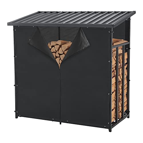 VEVOR Vedhylla, metall, 132 x 36 x 117 cm, vedhylla, stålram, pulverlackering, vedskydd 200 kg med vattentätt skydd, stapelstöd, träskydd för veranda, trädgård, terrass, gård