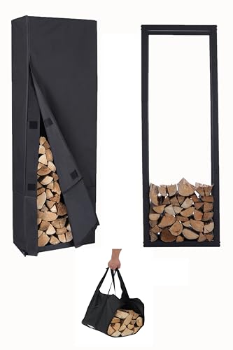 Lendo Online Vedhylla + vattentätt skyddsöverdrag + bärväska – inomhus och utomhus – vedhylla – vedförvaring – metall (50x25x196cm)