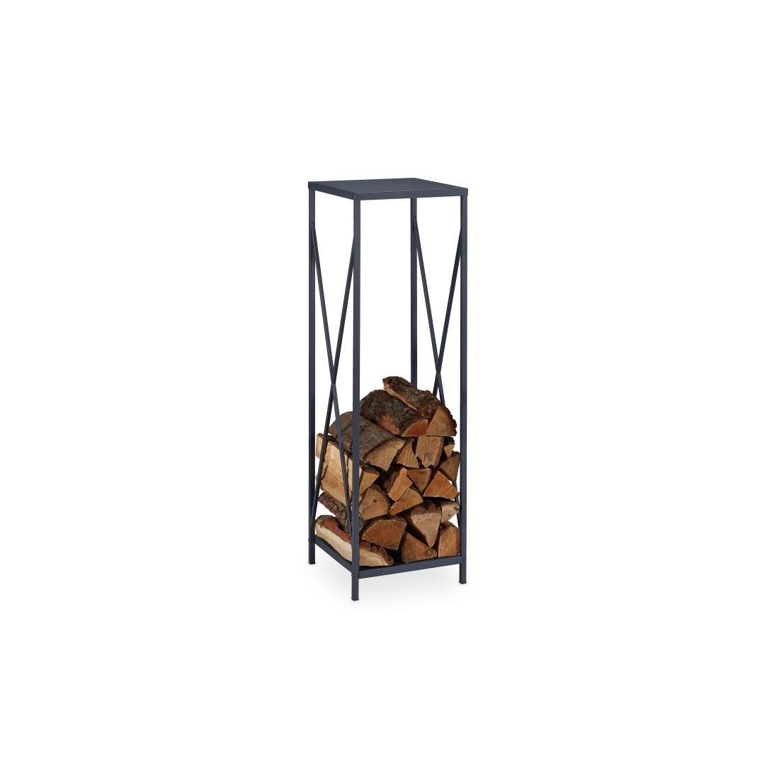 Relaxdays Vedhylla, träbitar stapelstöd, av stål, inomhus och utomhus, vedhylla, H x B 100 x 40 cm, antracit