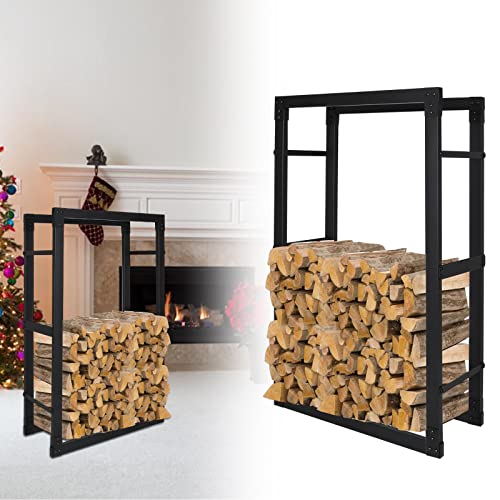 Jopassy Vedhylla inomhus metall 80 x 25 x 150 cm, vedhylla för inomhus, vedställ, vedförvaring inomhus, trästativ för öppen spis, svart
