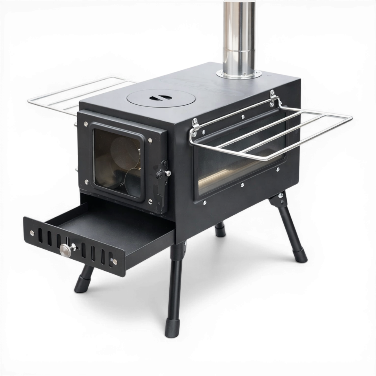 Portabel tältkamin med skorsten – vedkamin för camping & friluftsliv
