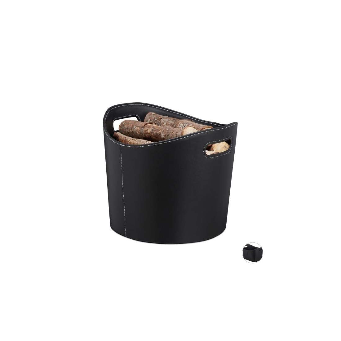 Relaxdays, svart vedkorg fuskläder L, robust vedkorg med bärhandtag, för ved och tidningar, oval, L