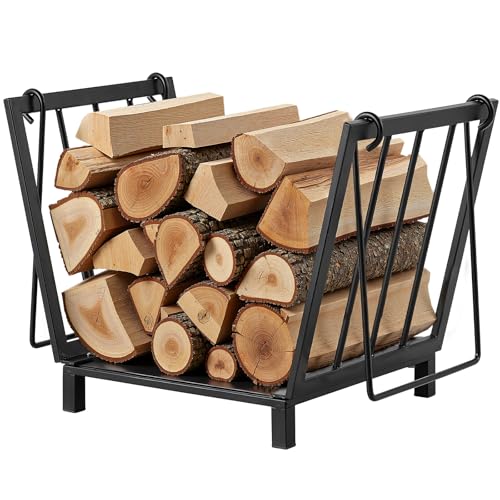 Amagabeli vedkorg 36 x 32 x 31,5 cm träkorg öppen spis korg vedhållare för öppen spis vedhållare för uppvärmning av trä stål trä förvaring inomhus/utomhus vedeldad spis