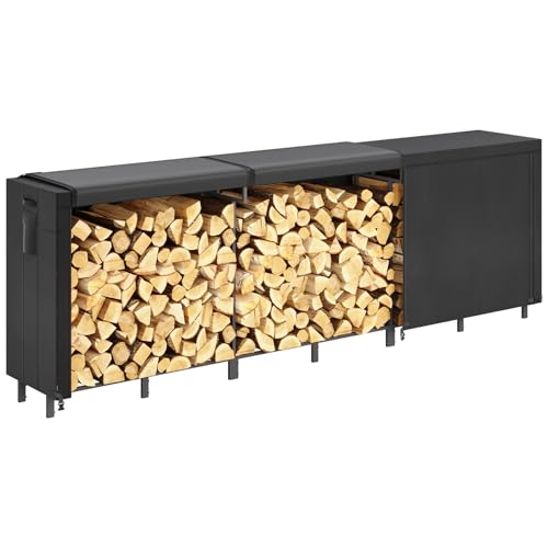 Lifewit Vedställ,365.8×58.5×122cm vedhylla utomhus med vattentätt lock Vedkorg för Kamin, tung logghylla, vedhållare, trästapel förvaring, trähylla för öppen spis, eldstäder