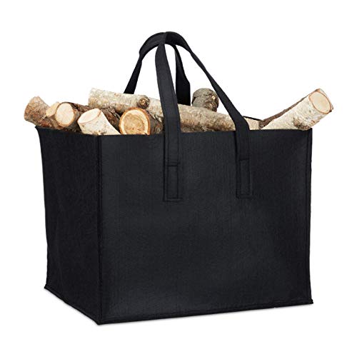 Relaxdays öppen vedväska av polyester, bärbar vedkorg, vikbar kaminväska, slitstark, svart