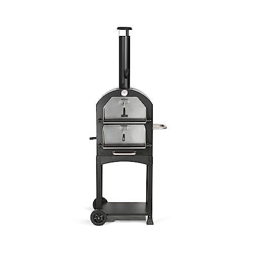 Livoo feel good moments Pizzaugn utomhus med grillfunktion – trädgårdsugn med grill för trä eller kol – vedspis pizza – ugn för trädgård – kolgrill pizzasten – temperaturregulator