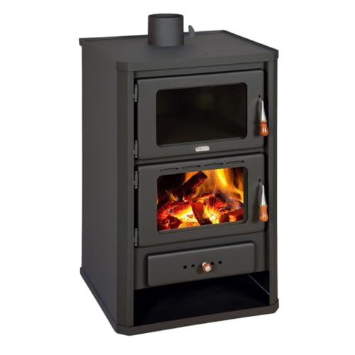 Prometey EEK A+ kamin med bakfack och spisplatta Perfect Eco svart, höger vedspis 7 kW öppen spis, ugn, trä, verkstadsugn ugn, värme, trädgårdsugn, L