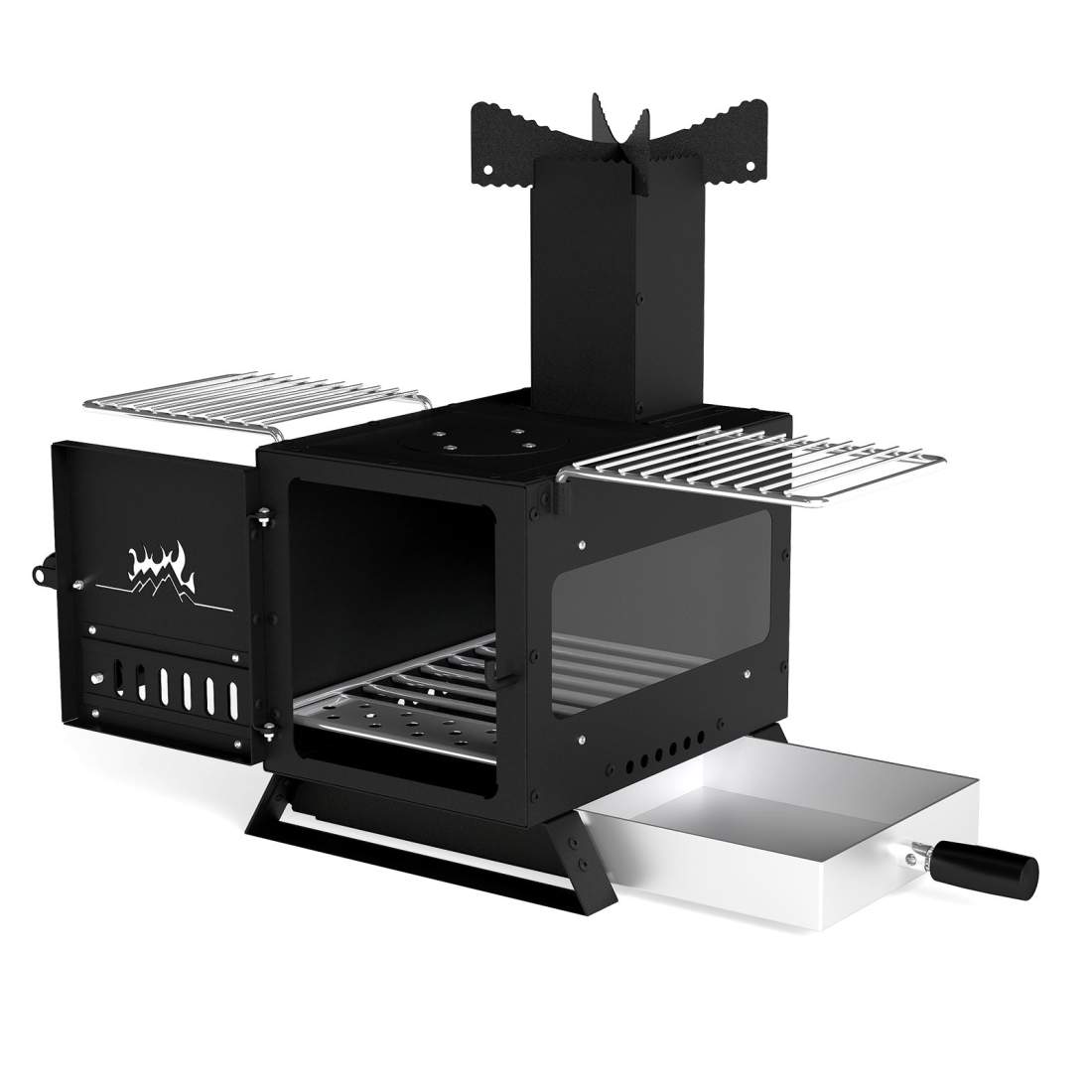 OneTigris Tiger ROAR Tältugn trä, bärbar vedspis för camping, vinter, utomhus, ugn, vedspis för tält med rör och läderhandskar 21,5 x 44 x 27 cm
