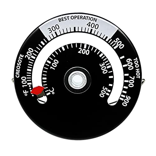 MIVAIUN Magnetisk spis termometer brandspis termometer mätare för trä stock skorsten ugn temperaturmätare vedspis termometer öppen spis temperaturmätare för rökrör träbrännare BBQ (svart)