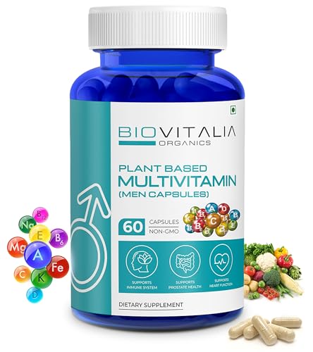 Biovitalia Organics Multivitamin Capsule for Men | Dietary Supplement | Supports Immune System & Prostate Health | Energy Booster & Supports Bone Health | Gluten Free - 60 Vegan Capsules
