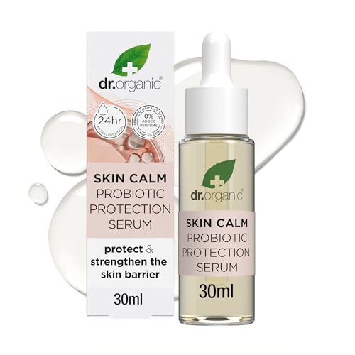 Dr Organic Skin Calm probiotiskt skyddsserum, för rodnad, torr, känslig och irritabel hud, 24 timmars fukt, dermatologiskt testad, vegan, grymhetsfri, paraben- och SLS-fri, certifierat ekologiskt, 30
