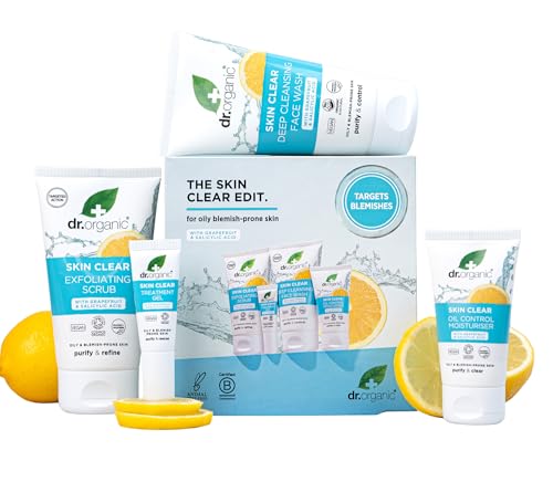 Dr Organic - Skin Clear Edit Bundle - Women's & Men's Skincare - För Oily Blemish -Prone Skin - Vegan, Cruelty, Paraben & SLS Free - 125 ml, 150 ml, 50 ml & 10 ml - Bundle