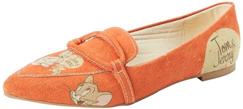 DOGO Dam läder vegan orange platta skor - Warner Bros Tom & Jerry mönster, Material: Polyester, 36 EU