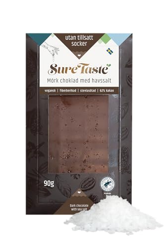 Sure Taste Dark Chocolate with seasalt (12 x 90gram) vegansk mörk choklad med havssalt utan tillsatt socker.