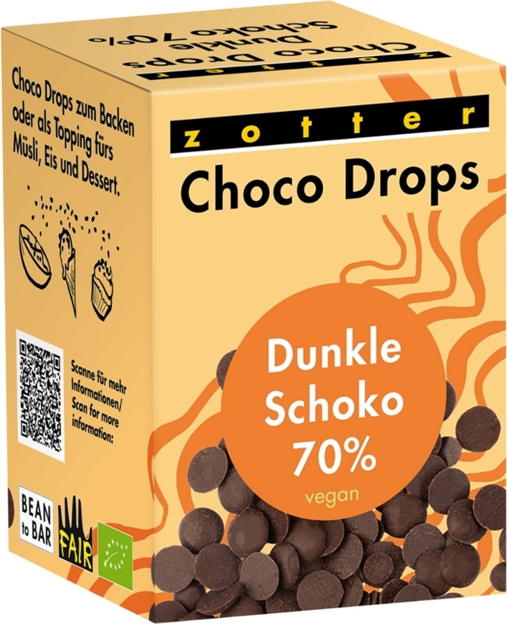 Zotter Schokoladen Choco Drops - Mörk choklad 70%, vegansk, Ekologisk - 100 g