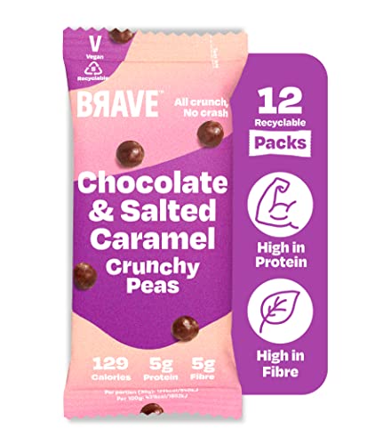 BRAVE Rostade ärtor – läckra hälsosamma mellanmål – vegansk – hög växtprotein och fiber – lågt kaloriinnehåll – växtbaserad, mejerifri (choklad och saltad karamell)
