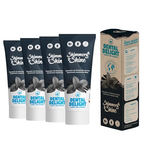 DENTAL DELIGHT Shimmery Shine Tandkräm - Vegansk Med Smak (Aktiv Kolmynta, 4-Pack)