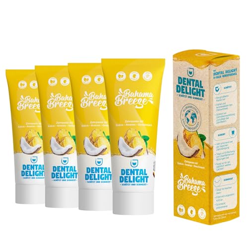DENTAL DELIGHT Bahama Breeze Vegansk Tandkräm Med Smak (Ananaskokos, 4-Pack)