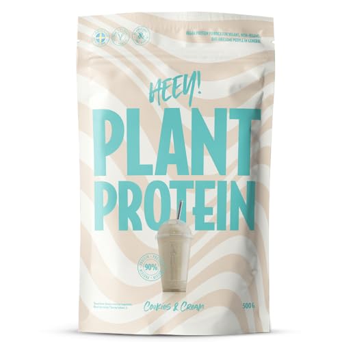 Heey! Veganskt Proteinpulver, 27 g Protein per Portion, med Vitamin B12, Vaniljsmak (500 g, Cookies & Cream)