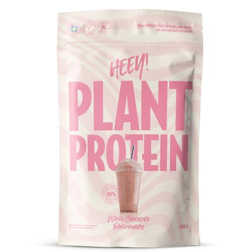 Heey! Veganskt Proteinpulver, 27 g Protein per Portion, med Vitamin B12, Vaniljsmak (500 g, Vit Choklad Hallon)