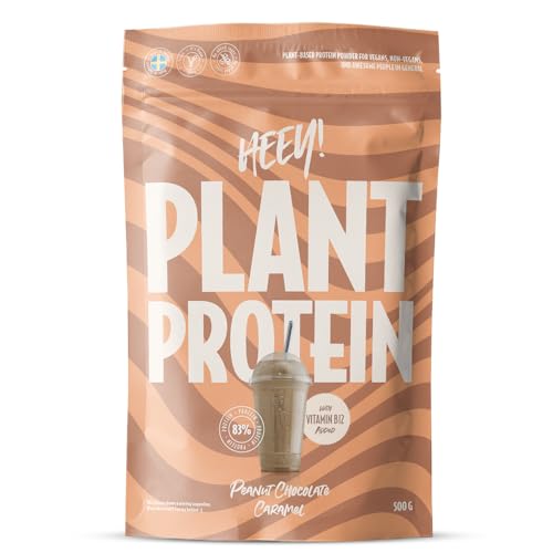 Heey! Veganskt Proteinpulver, 27 g Protein per Portion, med Vitamin B12, Vaniljsmak (500 g, Jordnöt Choklad Karamell)