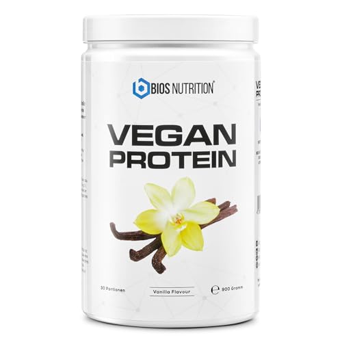 Veganskt protein VANILJ 900gr - 4K veganskt proteinpulver - naturligt utsökt smak - växtbaserat protein utan gluten & utan soja - BIOS Nutrition (Tillverkad i Tyskland)