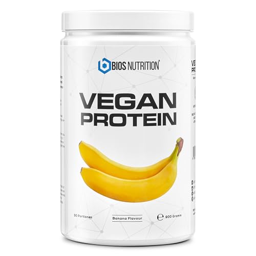 Veganskt protein BANANE 900gr - 4K veganskt proteinpulver - naturligt utsökt smak - växtbaserat protein utan gluten & utan soja - BIOS Nutrition (Tillverkad i Tyskland)