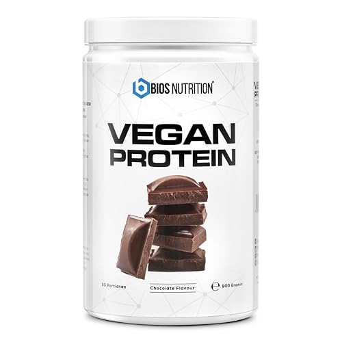 Veganskt protein CHOKLAD 900gr - 4K veganskt proteinpulver - naturligt utsökt smak - växtbaserat protein utan gluten & utan soja - BIOS Nutrition (Tillverkad i Tyskland)