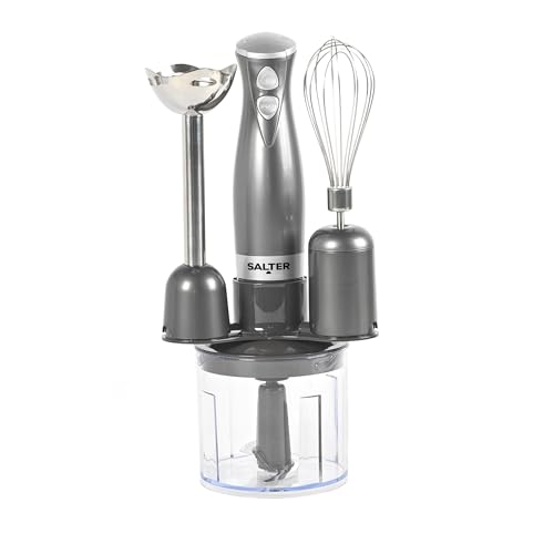 Salter Cosmos 3-i-1 handmixer – whisk, mixer och chop, matberedare, vegetable chopper, rostfritt stålblad, 500 ml skål, whisk & mixer bilagor, 2 hastigheter, 350W, EK2827GUNMETALFVDE