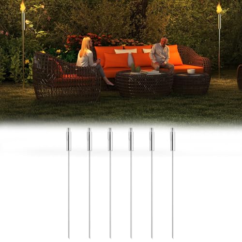 Aufun 6 rostfria trädgårdsfacklor, 115 cm hög, rostfri med barnsäkring, lämplig för trädgård, terrass, camping, utomhusolja 330 ml, oljelampa med veke, bärbara facklor