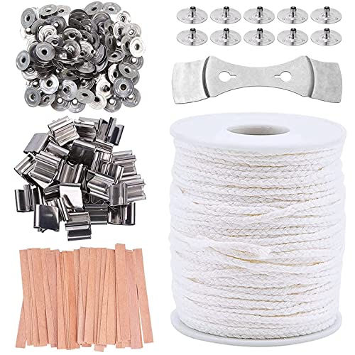 61 m ljusveke, ljusveke bomull, naturlig ljusveke flätad platt veke för ljus med 1 metallhållare + 100 järnplåtar + 25 trävekar + 25 järnstativ, rökfri, för ljustillverkning, oljelampa