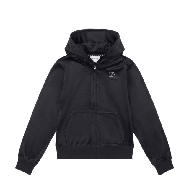Tonal Embro Velour Zip Thru Hoodie Black Juicy Couture
