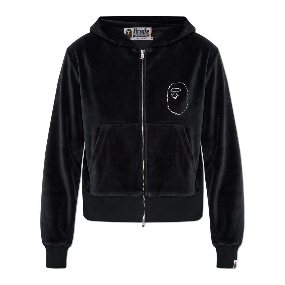 A Bathing Ape, Sweatshirts & Hoodies , Dam, S, Bomull, Crystal Stone Ape Head Velour Zip Hoodie