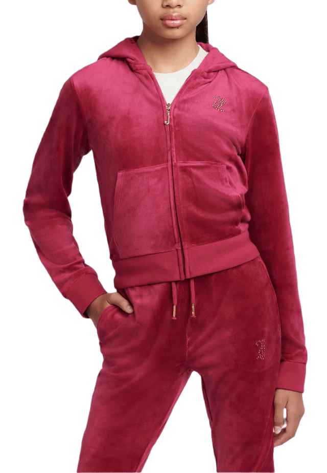 Juicy Couture Sweater Tonal Embro Velour Zip Thru Hoodie Rosa