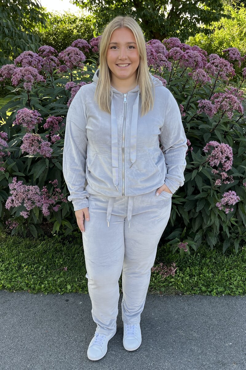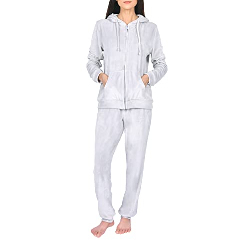 Sleepdown Dam damer velour träningsoverall 2 delar topp och botten joggingbyxor mjuka mysiga lediga träningskläder set, Grå, S