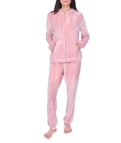 MessBebe Velour träningsoveraller för kvinnor set sweatsuit huvtröja topp och joggingbyxor vardag myskläder 2 delar sportkläder, Puderrosa, L