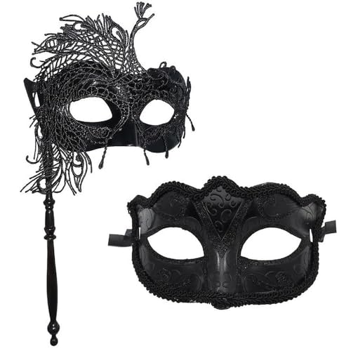 ASFWAGQ 2 stycken venetiansk maskeradmask par maskerade masker kvinnor män venetiansk mask för maskerad fest, karneval, halloween, cosplay, bal, jul