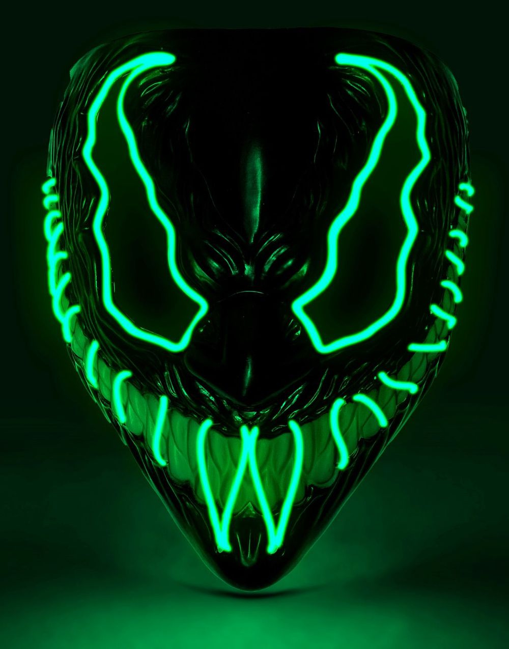Svart Venom/Carnage Inspirerad Mask med Grönt LED Ljus