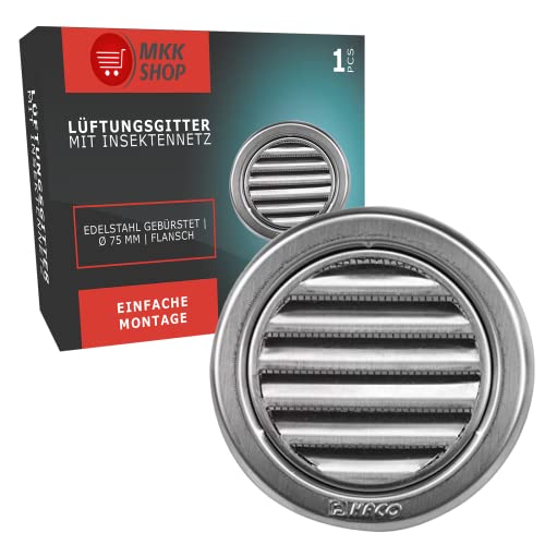 Runt ventilationsgaller med myggnät för garage, kök, badrum, Ø 75, 100, 110, 125, 150 mm, för garage, kök, badrum, Ø 75 mm