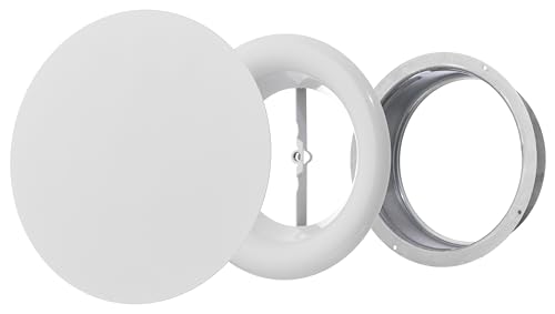 Steinberg14 Rund Vit Metalldiffusor - 125mm Ventil för Tilluft och Frånluft - Justerbar Luftventil för Vägg och Tak - Ventilationsgaller för Badrum Kök Garage
