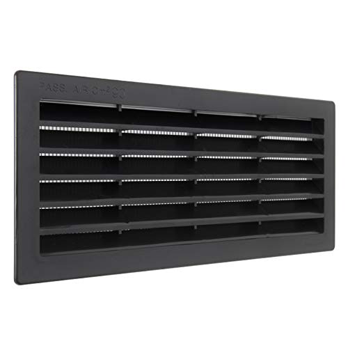 La Ventilazione P25R2510N infälld svart plast infälld ventilationsgaller med insektsnät, mått 254 x 108 mm