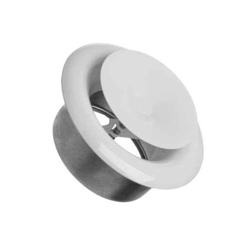 Ø 100mm Justerbart Metalldiffusor - Avluftningsventil - Runt Ventilationsgaller - Tallriksventil - Stål - Vit