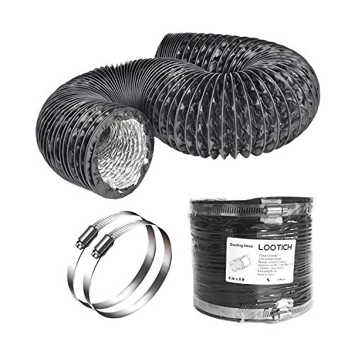 LOOTICH Stark Ø 153mm Luft Kanallängd 2,5m Svart PVC Flexibel Aluminiumkanal med 2 Rostfria Klämmor 4 Lager HVAC Ventilationsslang