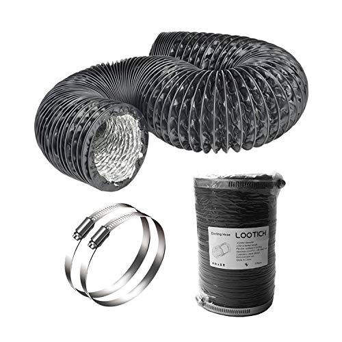 LOOTICH Stark Ø 102mm Luft Kanallängd 2,5m Svart PVC Flexibel Aluminiumkanal med 2 Rostfria Klämmor 4 Lager HVAC Ventilationsslang