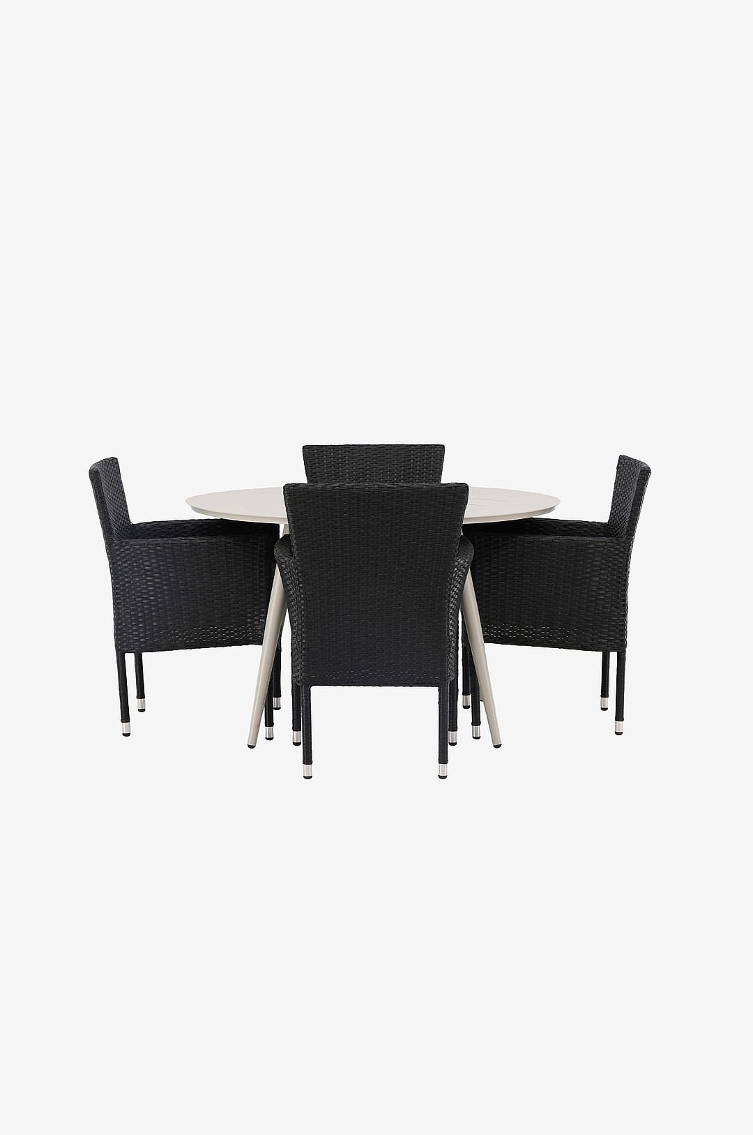 Venture Home Lina Matgrupp Rund 120 cm 4 Lindos Karmstol Beige/Svart GR22737