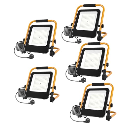 JBdusn LED-byggstrålkastare 100W, 5pcs Superljus vikbar arbetsbelysning med kontakt, 6000K bärbar strålkastare byggarbetslampa med 2M kabel, verkstadslampa arbetsbelysning för verkstad, garage
