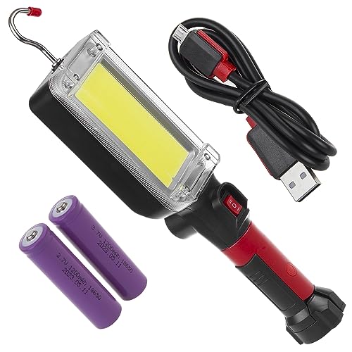 Retoo LED-arbetslampa, ficklampa, verkstadslampa, batteri, magnetisk arbetslampa för bilreparation, verkstad, garage, camping, nödbelysning, inspektionslampa med krok, COB-handlampa