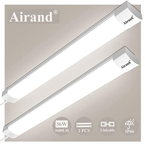 Airand 2 Stuks LED-Rör Våtrumslampa 120cm 36W 3600 LM Länkbar Verkstadslampa IP66 Vattentät för Garage Källare Verkstad Våtrum Badrum Kontor Varuhus, Neutral Vit