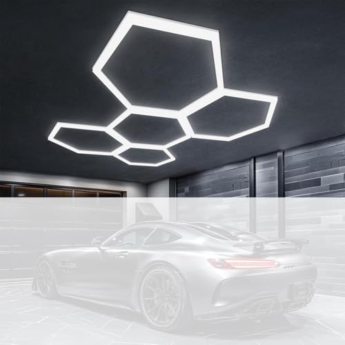 5 Hexagonal LED-garagelampa, 26400LM, bilskönhetstak LED-verkstadslampa, lämplig för lager, verkstad, gym, källare, toalett