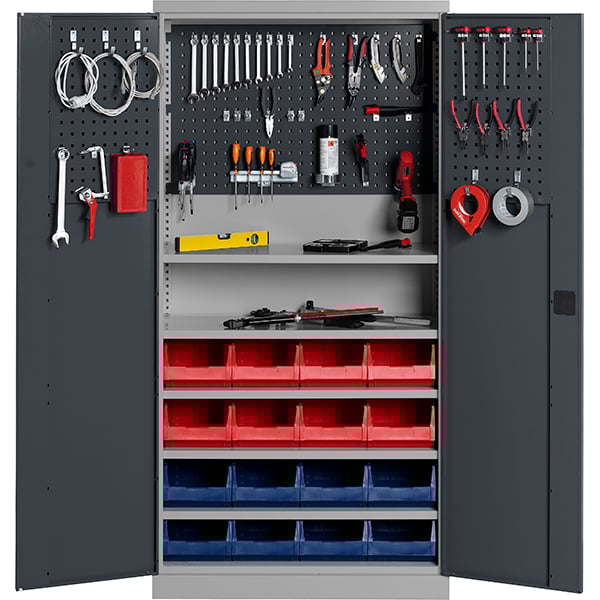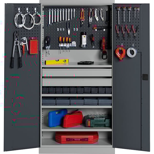 Verkstadsskåp GBP 1020x540x2000mm med inredning, RAL7004/7024